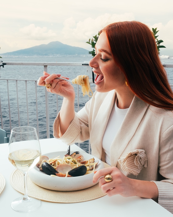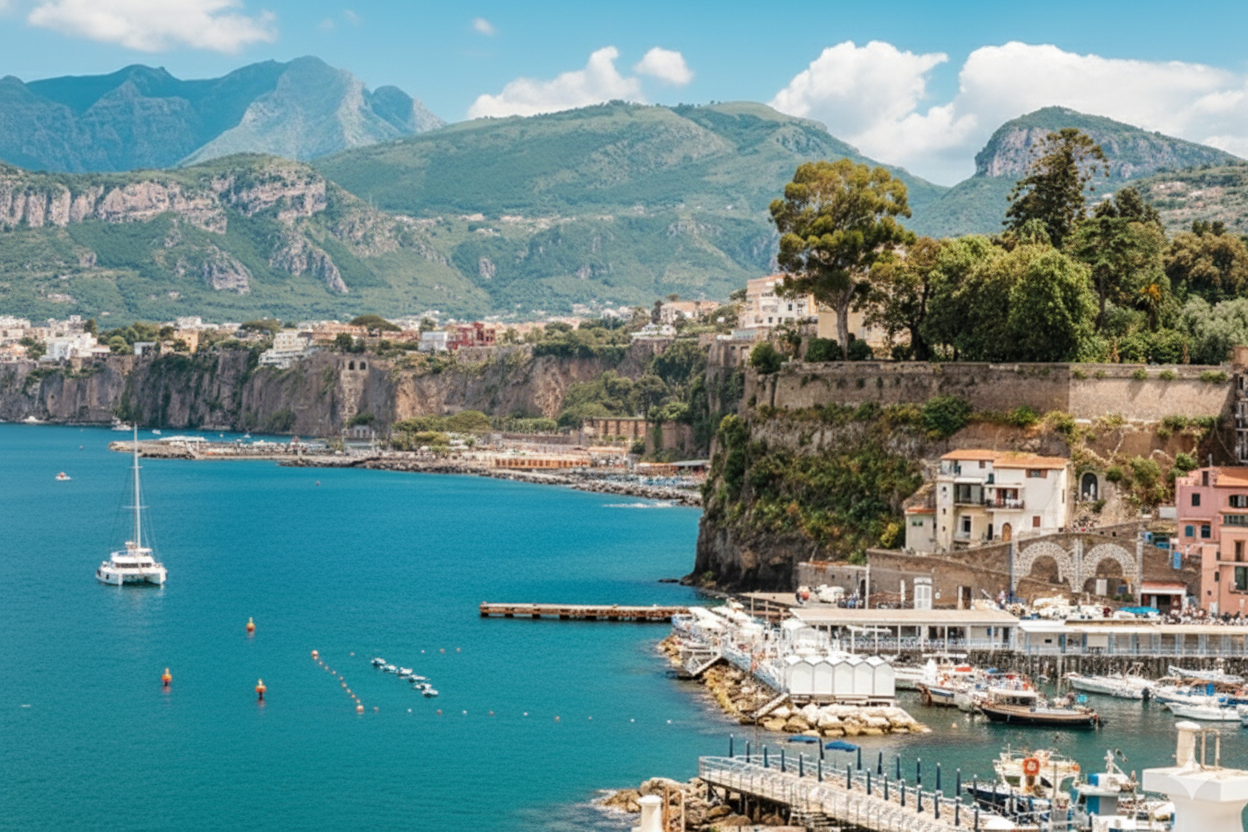 the Gulf of Naples, with a breathtaking view of Mount Vesuvius.