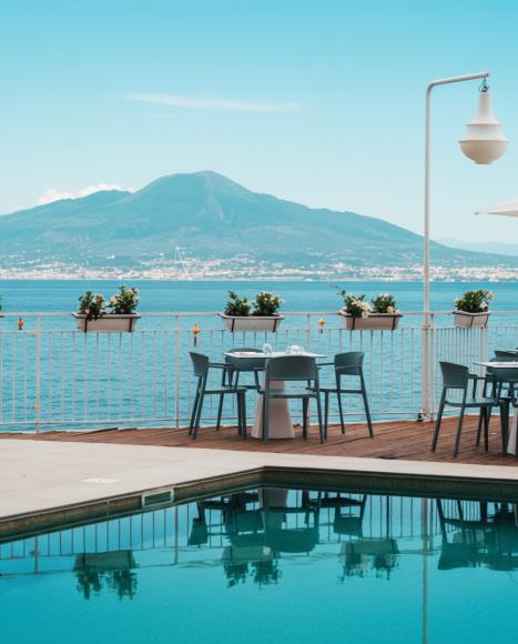 Mediterranean cuisine is one of the most admired culinary traditions worldwide. At Acqua Marina Restaurant, chefs create dishes from local and national traditions using fresh, high-quality ingredients. The restaurant features a stunning panoramic terrace overlooking the Gulf of Naples, perfect for unforgettable lunches and dinners. Guests can also enjoy the snack & lounge bar, ideal for a sunny break or to savor refreshing drinks and signature cocktails.